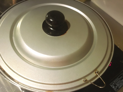 | (4)こんがり焼き目がついたら弱火にし、(2)の大根おろしをいれ、ふたを入れて軽く煮る。 |