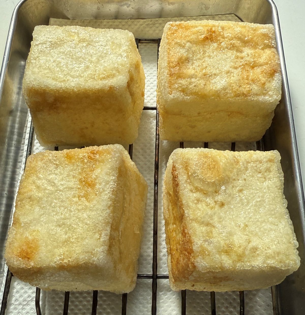 - ・水切りした豆腐を揚げる時は、油がはねることがあるので火傷に注意してください。