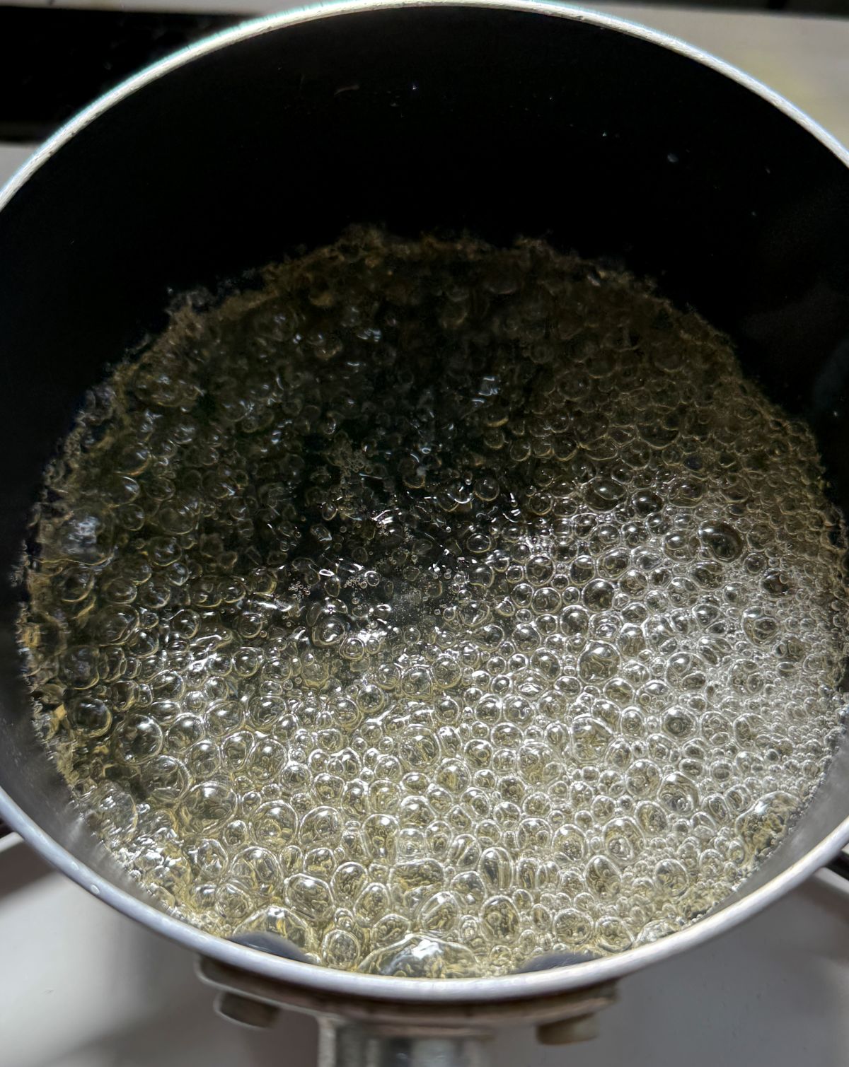 (5)小鍋にだし汁を入れて沸騰したら塩で味を調え、弱火にして(B)をかき混ぜながら少しずつ加え、全量加えたら中火にしてゴムベラなどでかき混ぜながらとろみをつける。