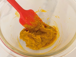 (2)熱いうちにつぶし、昆布茶・砂糖・牛乳・バターを加えて混ぜる。