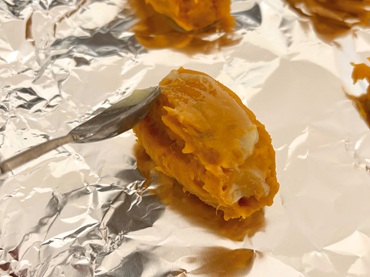 (3)大きめのスプーンを使って成形し、アルミホイルに並べる。
